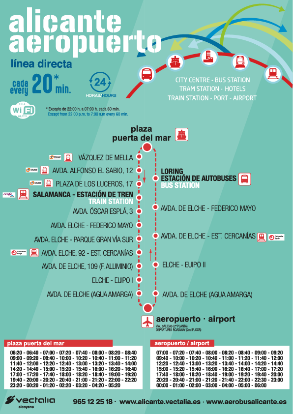- The bus is the best way to go to Alicante center. This 24h service offers a bus every 20min with a price of 3.85€/trip. The time depends on the stop but it's usually between 20-30 min. Selected stops are Plaza Puerta del Mar (Meliá Hotel) and Avda. Alfonso el Sabio, 12 (Eurostars Lucentum Hotel).